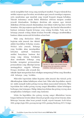 meninggalnya anggota keluarga. melahirkan tradisi gotong royong