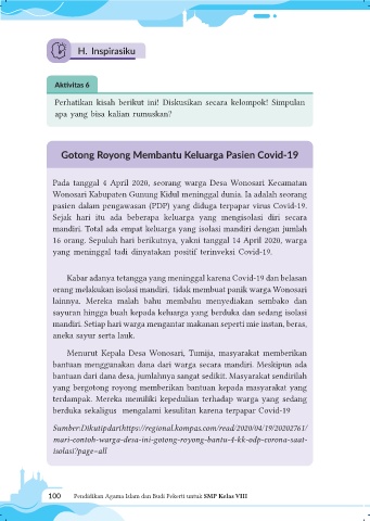 Perhatikan kisah berikut ini! Diskusikan secara kelompok! Simpulan