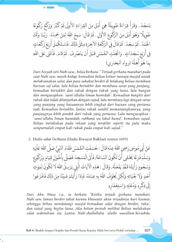 2. Hadis salat Gerhana (Hadis Riwayat Bukhari nomor 1059)