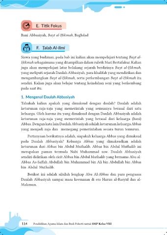 yang meliputi sejarah Daulah Abbasiyah, para khalifah yang mendirikan dan