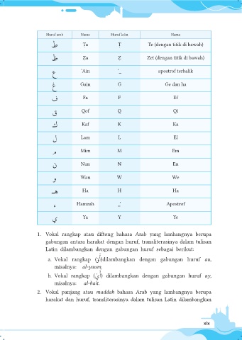 b. Vokal rangkap (يأ) dilambangkan dengan gabungan huruf ay,