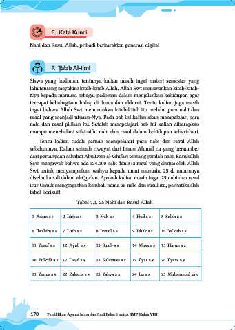 Tabel 7.1. 25 Nabi dan Rasul Allah