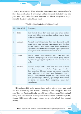 Tabel 7.2. Sifat Wajib Bagi Nabi dan Rasul