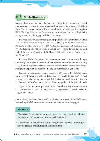 memproduksi pesawat terbang karya anak bangsa, yaitu pesawat N250 Gatot