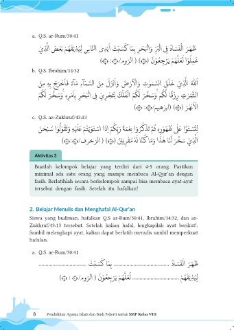 Siswa yang budiman, hafalkan Q.S ar-Rum/30:41, Ibrahim/14:32, dan az-