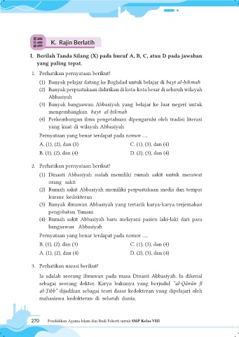 (1) Dinasti Abbasiyah sudah memiliki rumah sakit untuk merawat