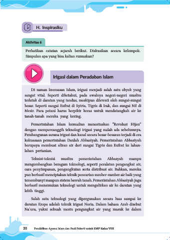 Di zaman keemasan Islam, irigasi menjadi salah satu obyek yang