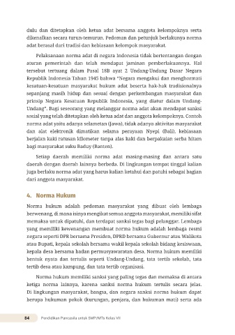 Pelaksanaan norma adat di negara Indonesia tidak bertentangan dengan
