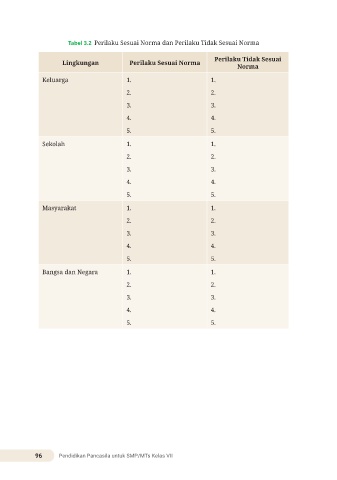 Tabel 3.2 Perilaku Sesuai Norma dan Perilaku Tidak Sesuai Norma