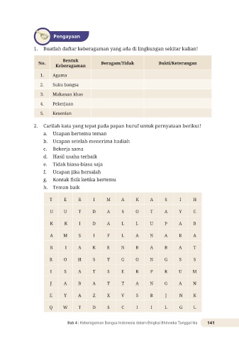 1. Buatlah daftar keberagaman yang ada di lingkungan sekitar kalian!
