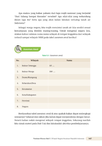 terkecil sampai wilayah NKRI pada tabel asesmen awal berikut!
