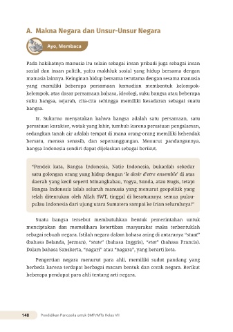 Ir. Sukarno menyatakan bahwa bangsa adalah satu persamaan, satu