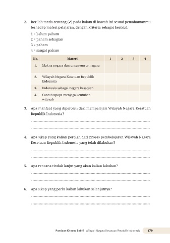2. Berilah tanda centang (✔) pada kolom di bawah ini sesuai pemahamanmu