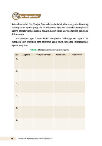 Tabel 2.1 Menganalisis Keberagaman Agama