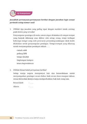 94 Pendidikan Pancasila untuk SMP/MTs Kelas IX