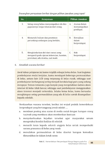 3. Setiap orang bebas menyampaikan ide dan A. Aturan dalam