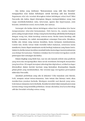 kepada temanmu, itu sudah menunjukkan semangat Pancasila. Misalnya,