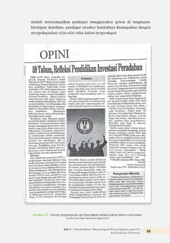 Gambar 3.7 Contoh penyampaian opini/pendapat melalui tulisan dalam surat kabar.