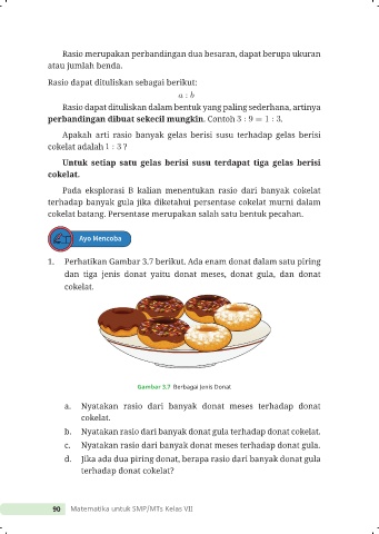 a. Nyatakan rasio dari banyak donat meses terhadap donat