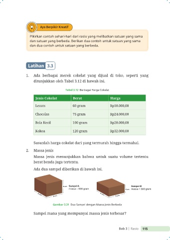 Pikirkan contoh sehari-hari dari rasio yang melibatkan satuan yang sama