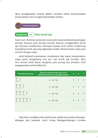 akan menggunakan bentuk aljabar tersebut untuk menyelesaikan