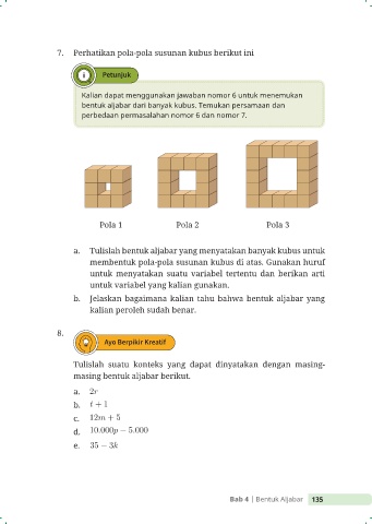 a. Tulislah bentuk aljabar yang menyatakan banyak kubus untuk