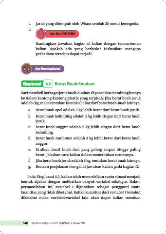 adalah t kg, maka tentukan bentuk aljabar dari berat buah-buah lainnya.