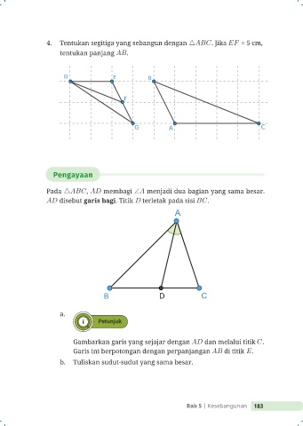Pada 4ABC, AD membagi ∠A menjadi dua bagian yang sama besar.