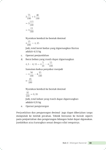 Penjumlahan dan pengurangan desimal juga dapat dikerjakan tanpa