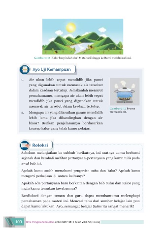 Gambar 3.11 Kalor berpindah dari Matahari hingga ke Bumi melalui radiasi.