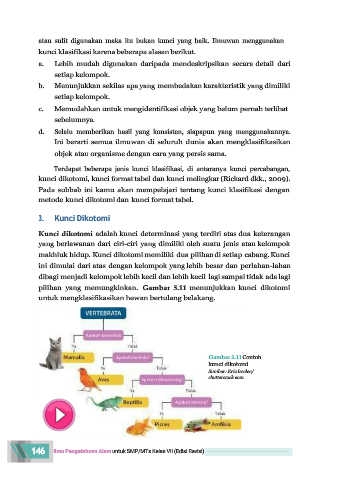 makhluk hidup. Kunci dikotomi memiliki dua pilihan di setiap cabang. Kunci
