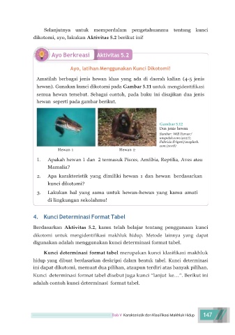 hewan). Gunakan kunci dikotomi pada Gambar 5.11 untuk mengidentifikasi