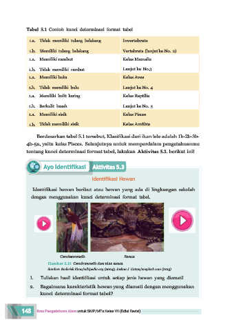 tentang kunci determinasi format tabel, lakukan Aktivitas 5.3. berikut ini!