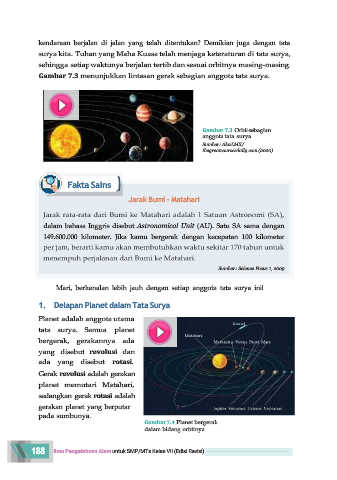 Gambar 7.3 menunjukkan lintasan gerak sebagian anggota tata surya.