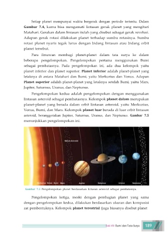 Gambar 7.5 Pengelompokan planet berdasarkan lintasan asteroid sebagai pembatasnya.