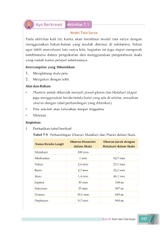 Tabel 7.9 Perbandingan Ukuran Matahari dan Planet dalam Skala