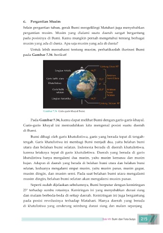 Pada Gambar 7.36, kamu dapat melihat Bumi dengan garis-garis khayal.