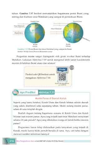 Gambar 7.37 Posisi Bumi dan sinar Matahari yang sampai ke Bumi.