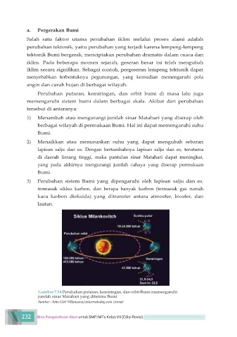Gambar 7.54 Perubahan putaran, kemiringan, dan orbit Bumi memengaruhi
