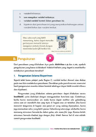 pengukuran yang harus ia lakukan? Adakah hal lain yang dapat ia amati ketika