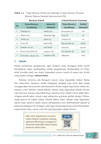 Tabel 1.2 Tujuh Besaran Pokok dan Beberapa Contoh Besaran Turunan