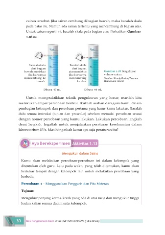 Untuk cairan seperti ini, bacalah skala pada bagian atas. Perhatikan Gambar