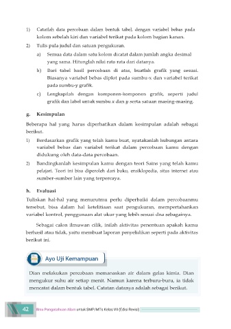 1)   Catatlah  data  percobaan  dalam  bentuk  tabel,  dengan  variabel  bebas  pada