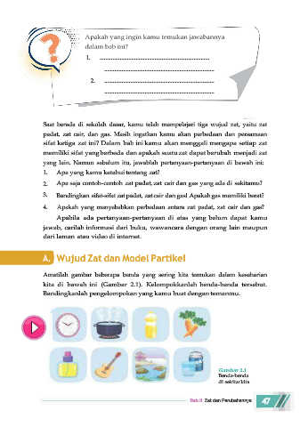 Saat berada di sekolah dasar, kamu telah mempelajari tiga wujud zat, yaitu zat
