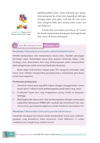 helium terbang lebih tinggi. ini untuk menentukan kerapatan berbagai benda