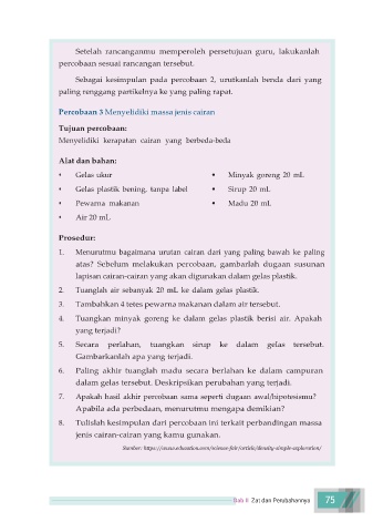 Menyelidiki kerapatan cairan yang berbeda-beda