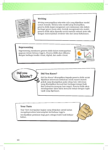 Writing menampilkan teks-teks tulis yang dijadikan model