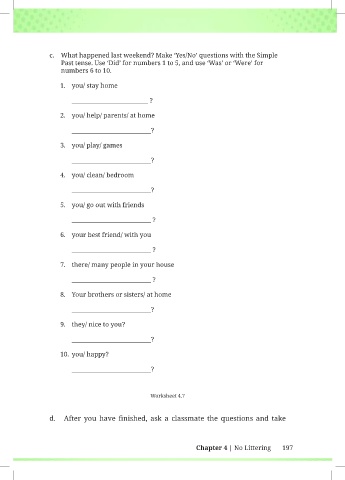 c. What happened last weekend? Make ‘Yes/No’ questions with the Simple