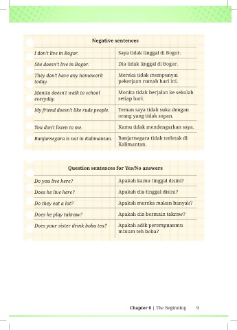 I don’t live in Bogor. Saya tidak tinggal di Bogor.