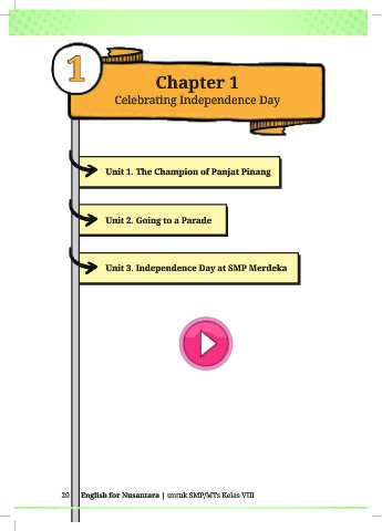1 1 Chapter 1 Celebrating Independence Day Unit 1. The Champion of Panjat Pinang Unit 2. Going to a Parade Unit 3. Independence Day at SMP Merdeka 20 English for Nusantara | untuk SMP/MTs Kelas VIII